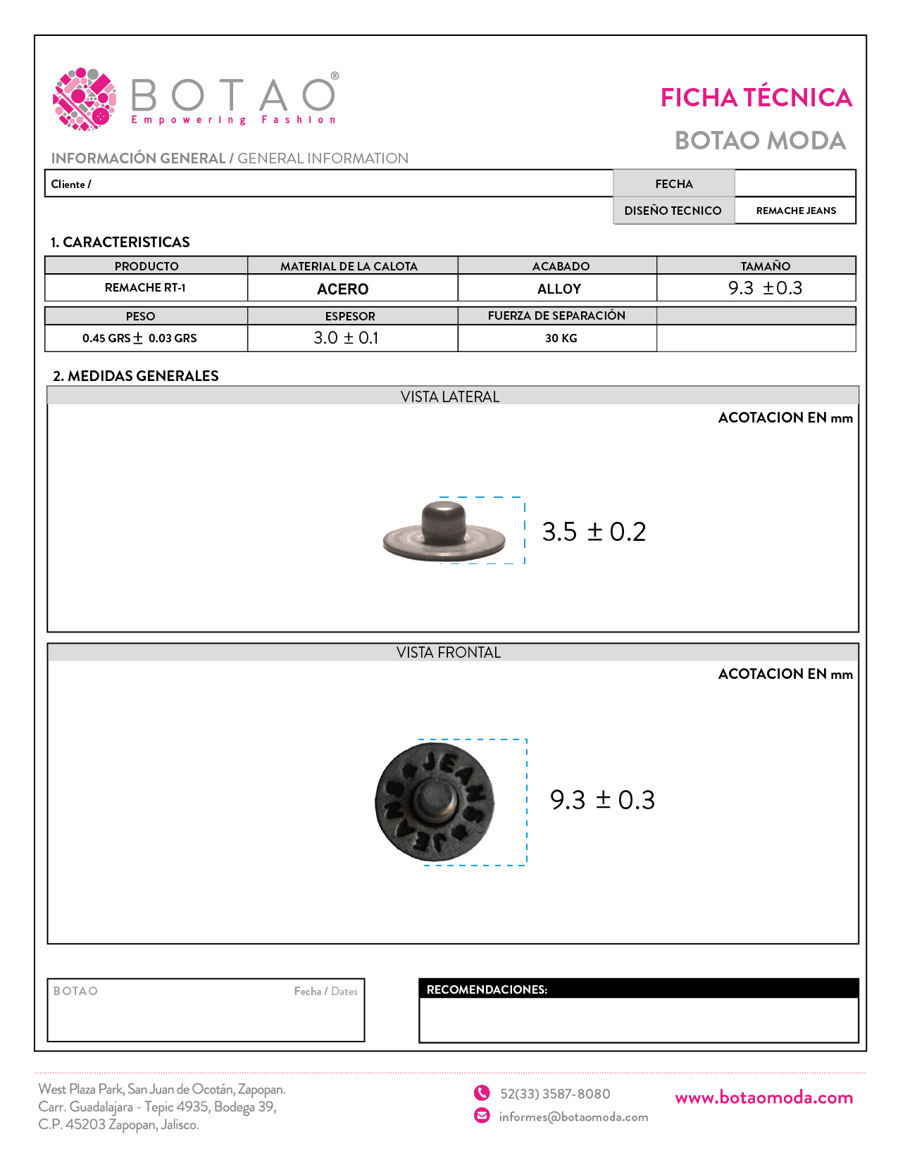 Remaches, etiquetas, botones, broches, todo tipo de producto para fijación de la industria del calzado, mueblera, textil, etc.