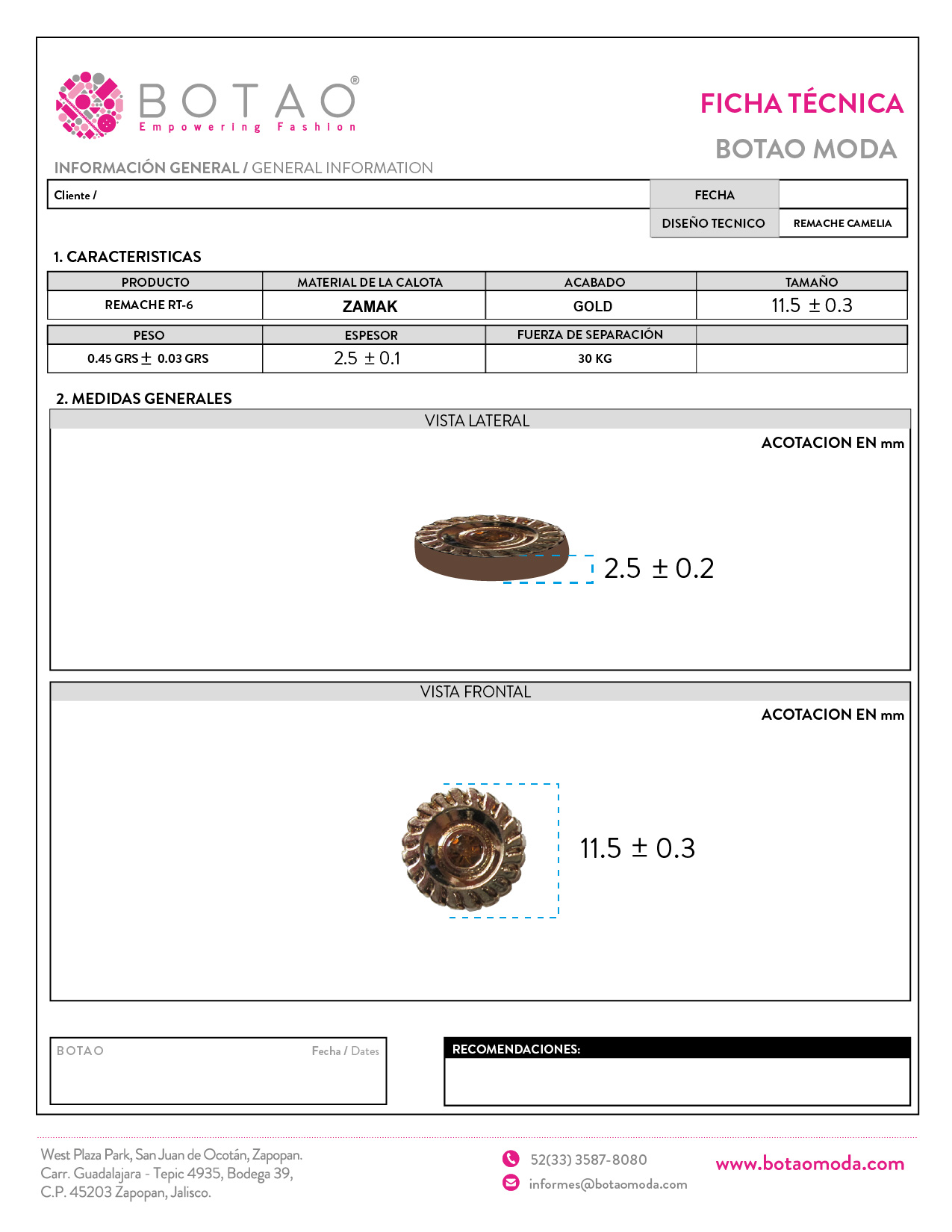 Remache Camelia 11.5 mm Zamack