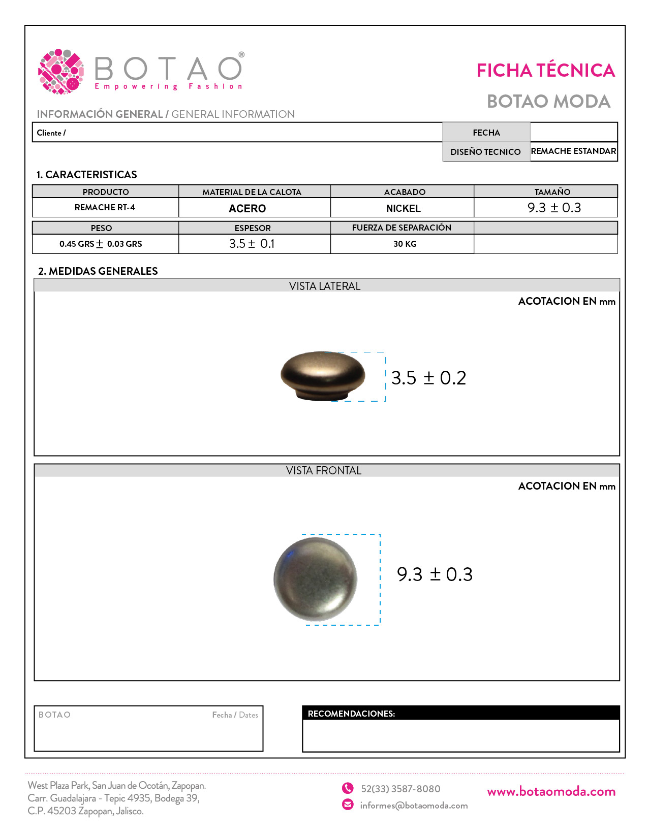 Remache RT-4 Liso Estándar 9.3 mm Acero