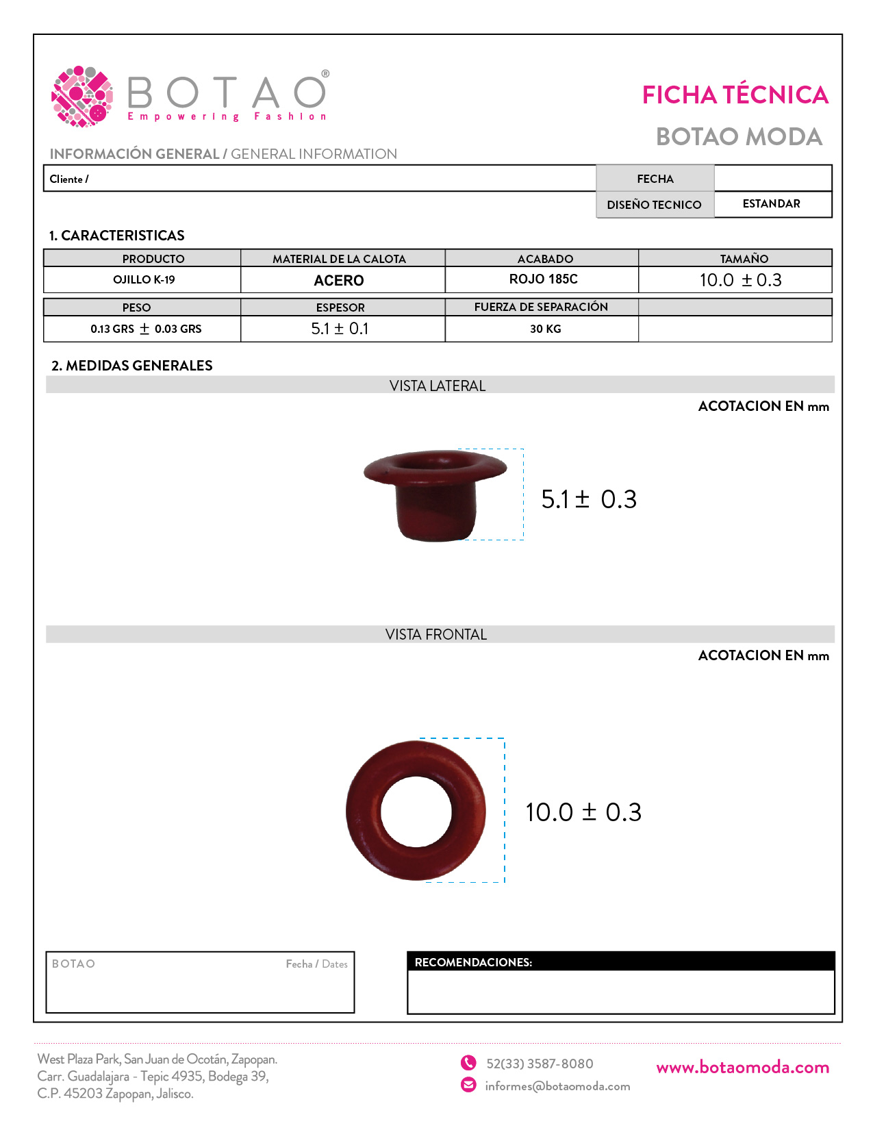 Ojillo Pintado k3 Color Rojo 185C