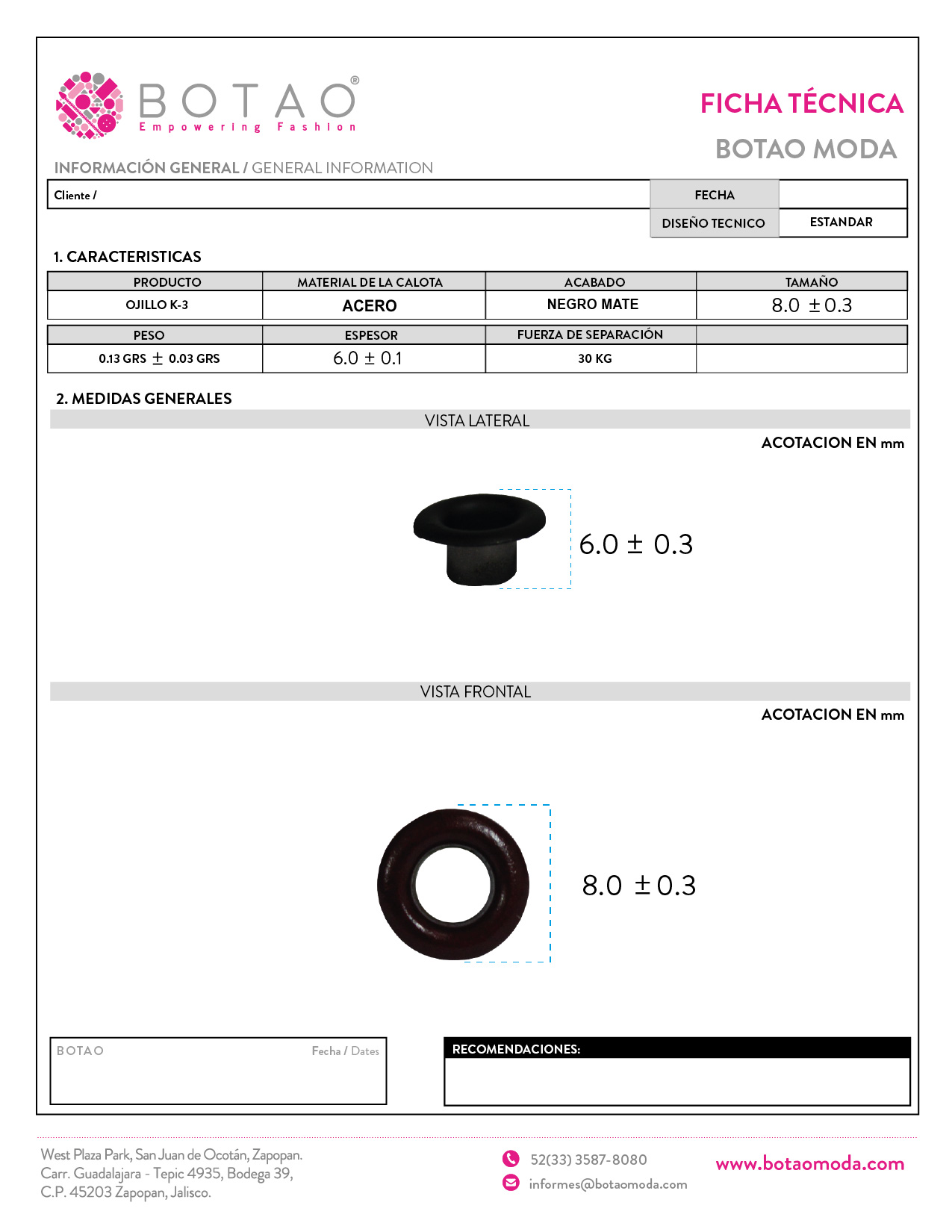 Ojillo Pintado k19 Color Negro Mate (2) Básico