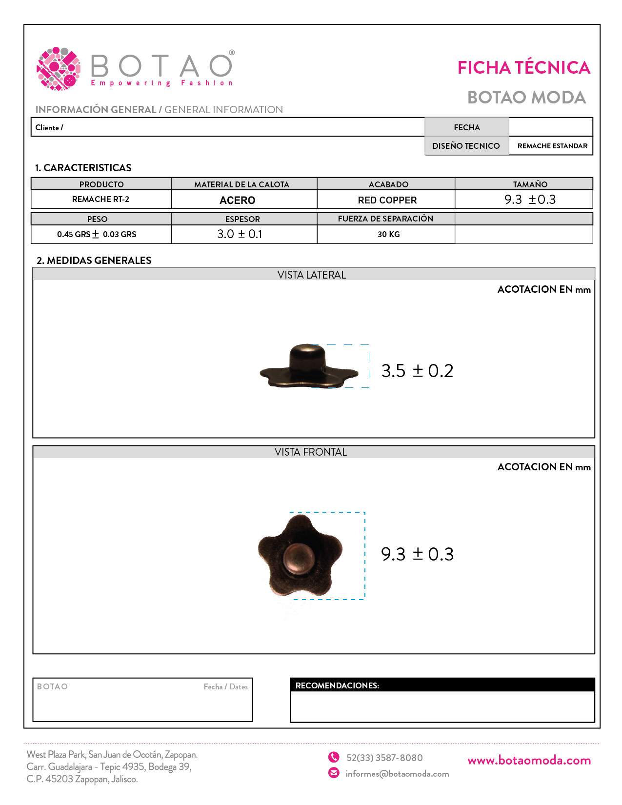 Remaches, etiquetas, botones, broches, todo tipo de producto para fijación de la industria del calzado, mueblera, textil, etc.