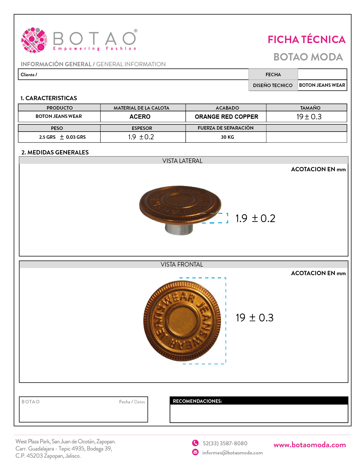 Botón Acero Jeans Wear Orange Red Copper 19 mm