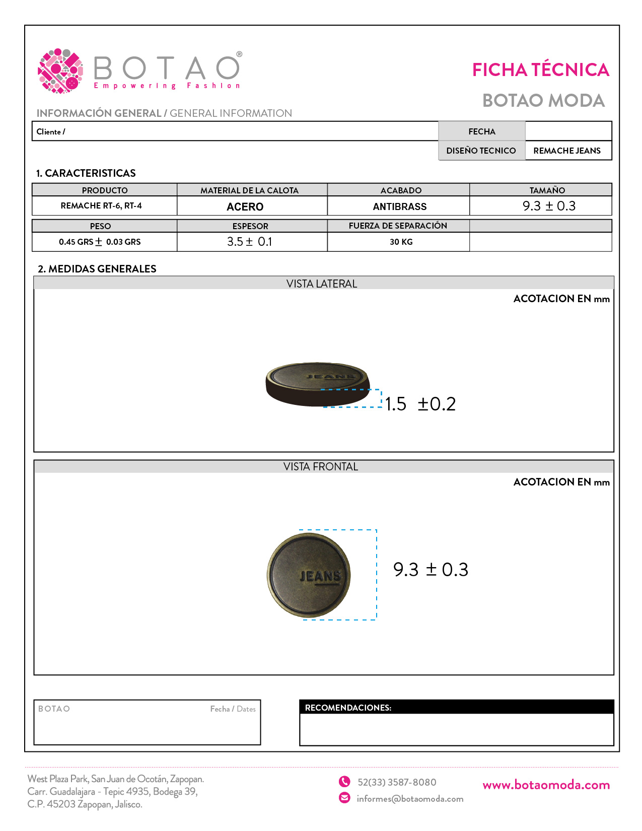 Remache Jeans Antibrass RT6 9.3 mm y RT4 8 mm