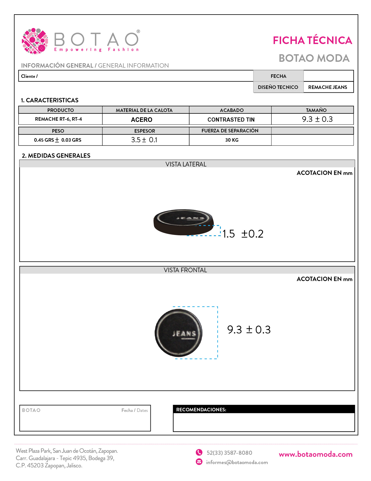 Remache Jeans Contrasted Tin RT6 9.3 mm y RT4 8 mm
