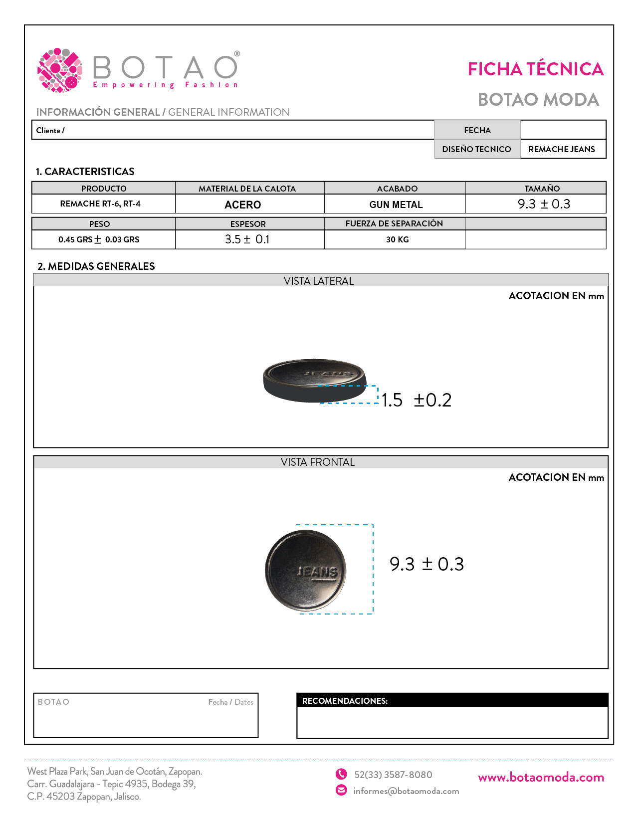 Remache Jeans Gun Metal RT6 9.3 mm y RT4 8 mm