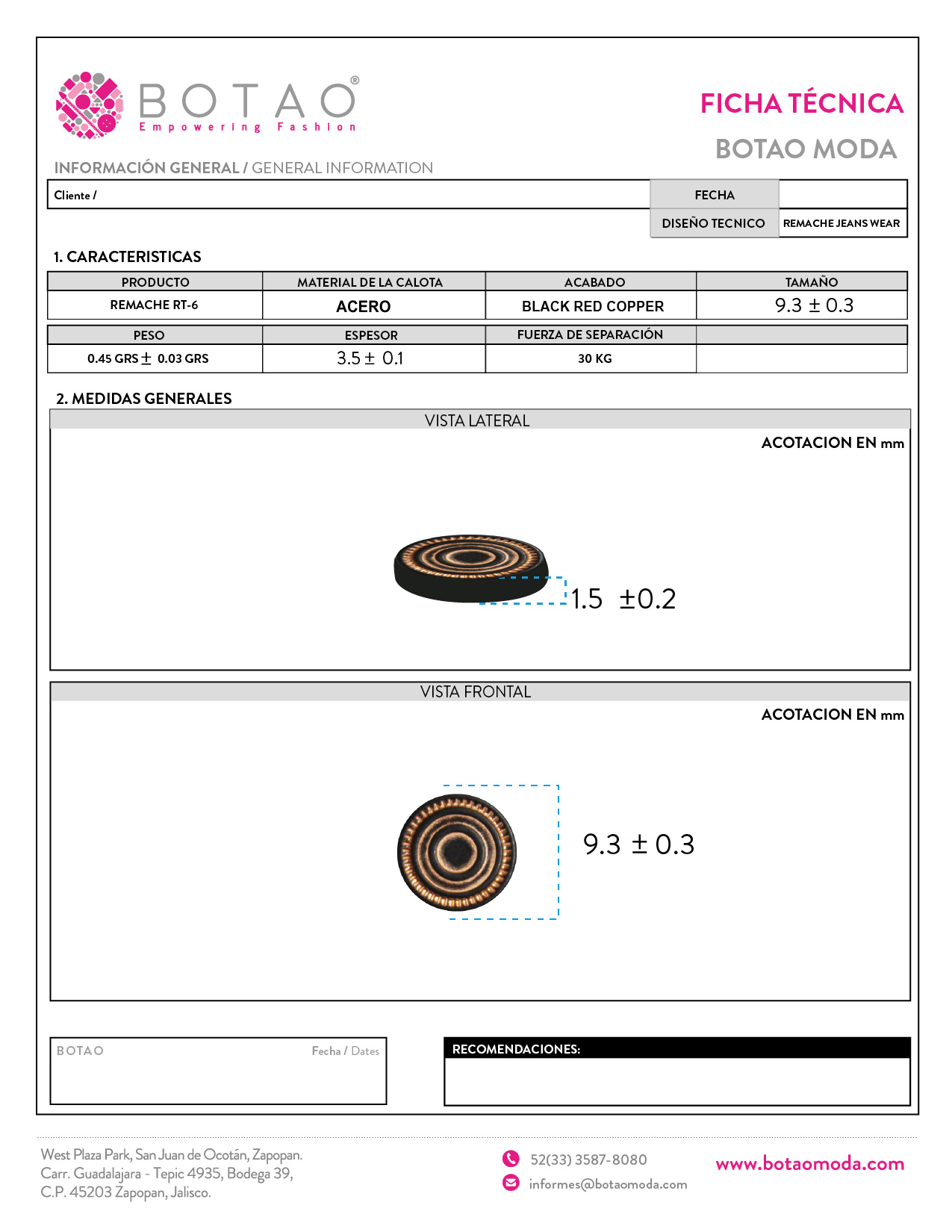 Remache Jeans Black Red Copper RT6 9.3 mm