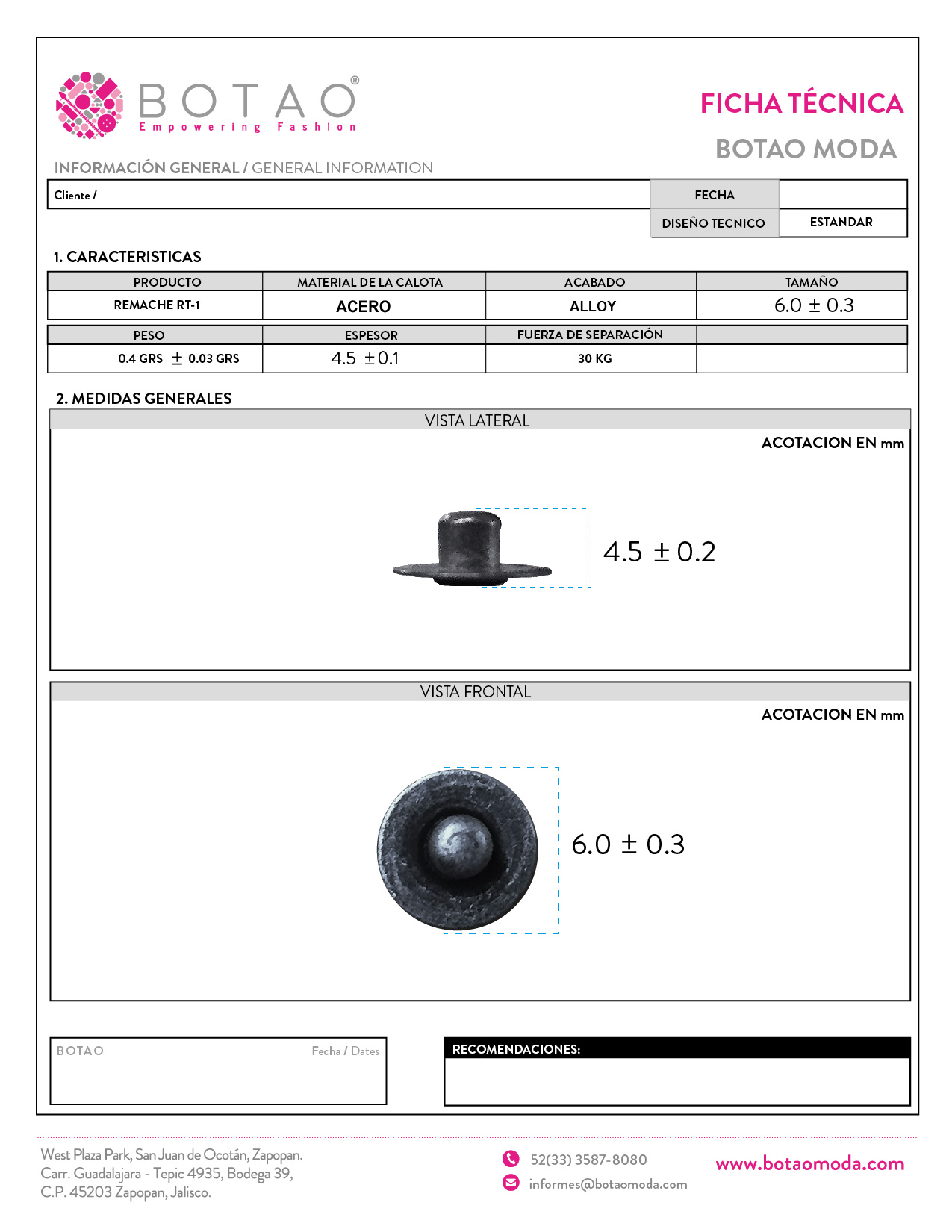 Remaches, etiquetas, botones, broches, todo tipo de producto para fijación de la industria del calzado, mueblera, textil, etc.
