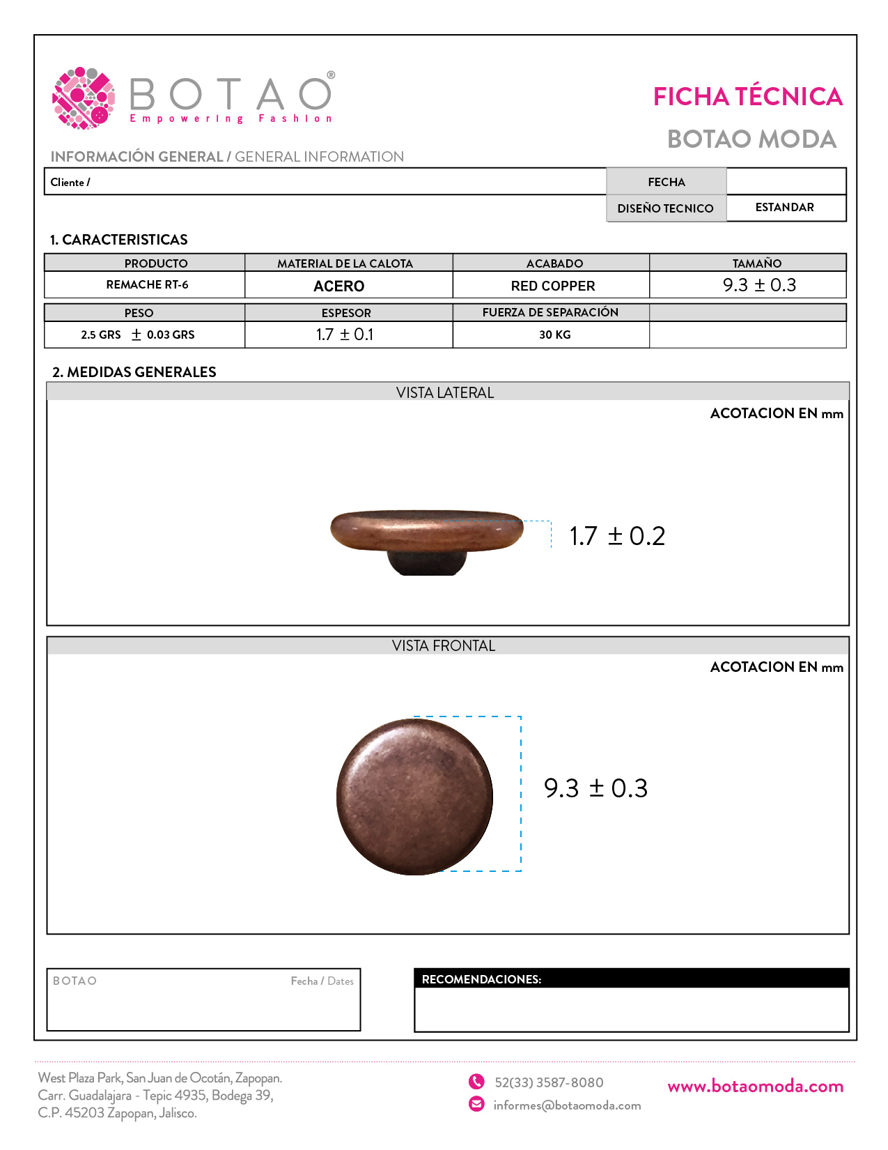 Remache RT6 Acero Red Copper 9.3mm