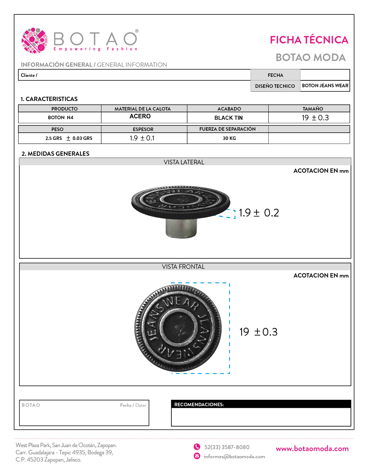 Botón JEANSWEAR Acero Black Tin 19 mm