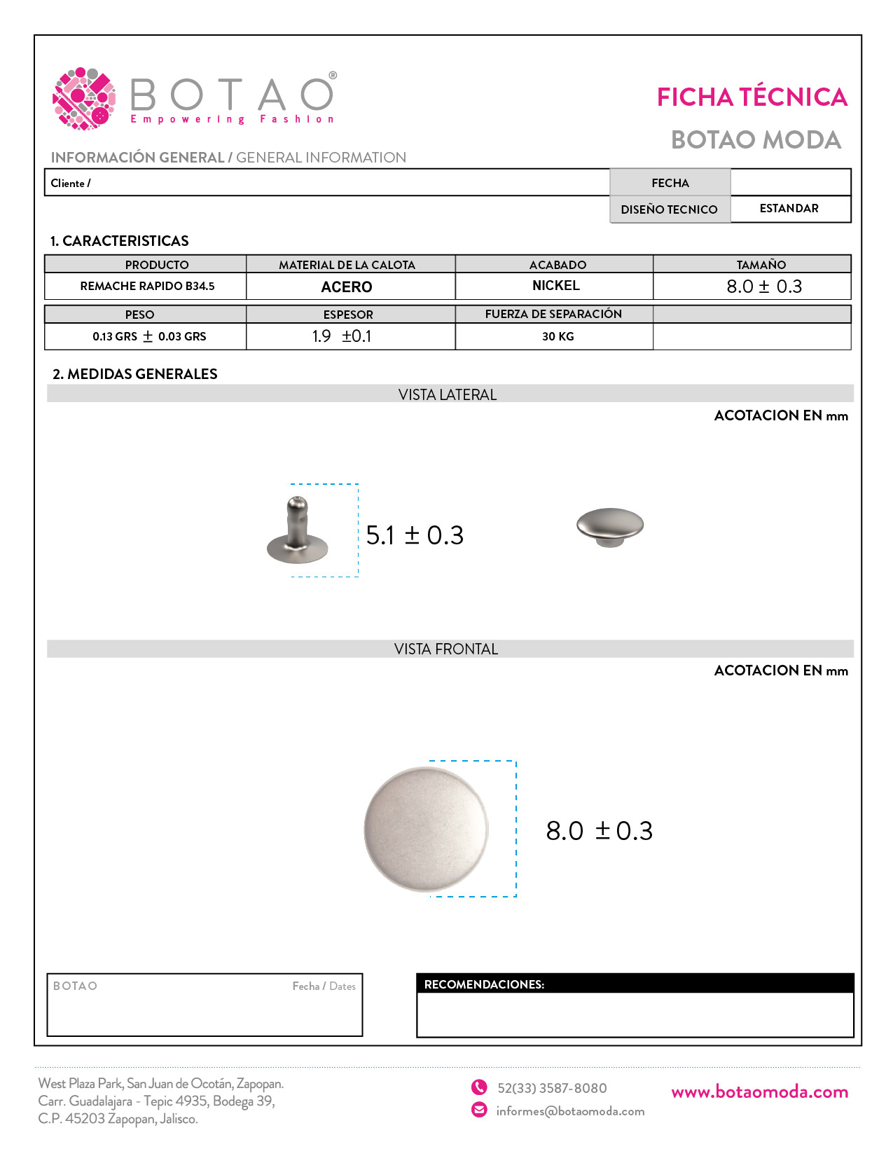 Remaches Rapidos Nickel 9 9 x 9 mm Mod. B-34,5