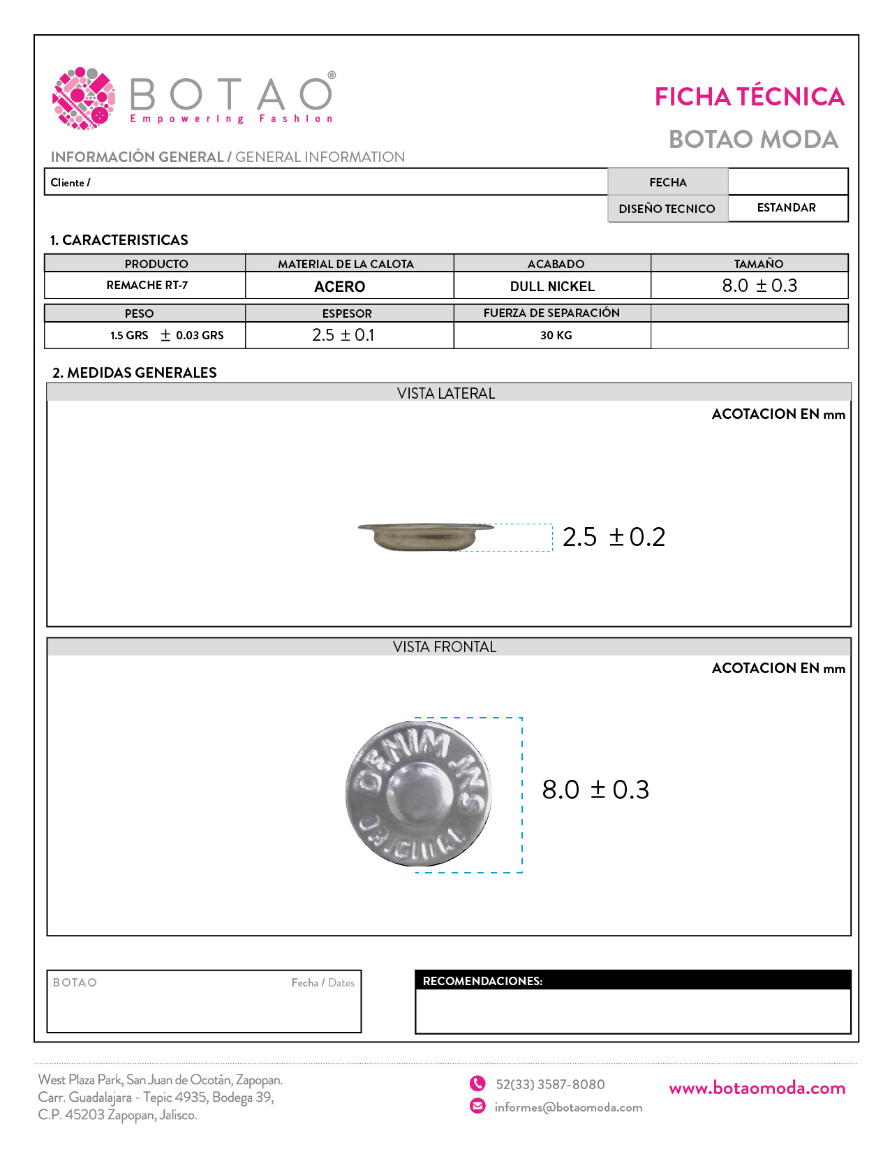 REMACHE JNS 8MM - RT7 ACABADOS DISPONIBLES: * GUN METAL * NICKEL * DULL NICKEL * RED COPPER * ANTIBRASS * GRAFITO * BLUE ZINC