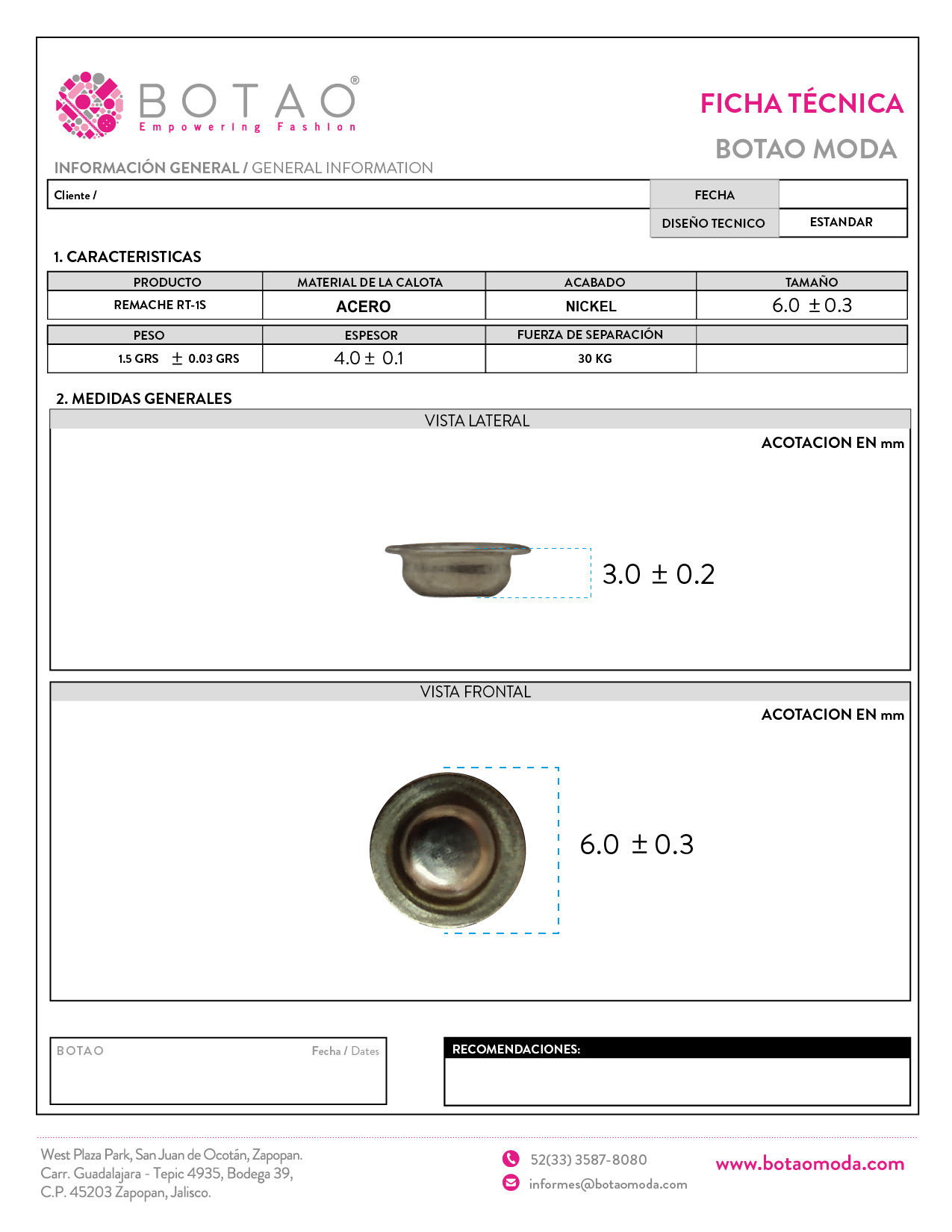Remaches, etiquetas, botones, broches, todo tipo de producto para fijación de la industria del calzado, mueblera, textil, etc.