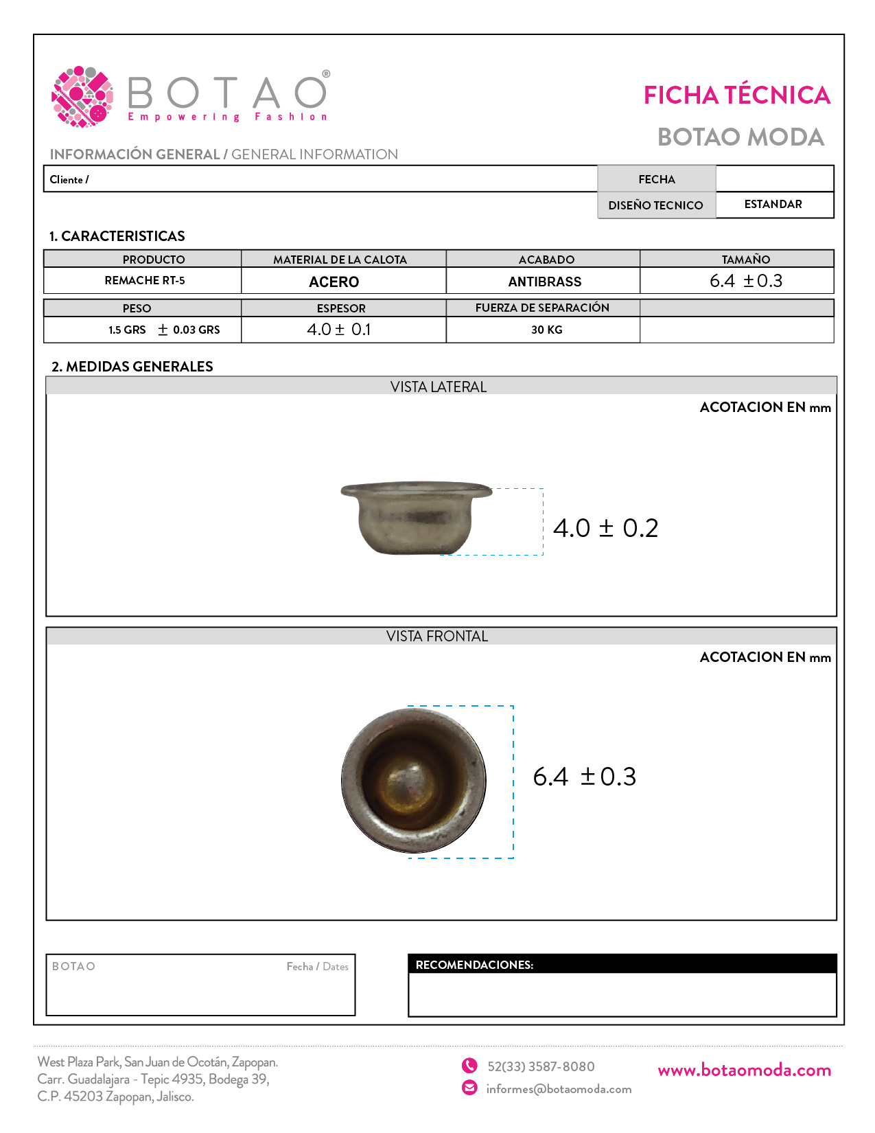 Remaches, etiquetas, botones, broches, todo tipo de producto para fijación de la industria del calzado, mueblera, textil, etc.