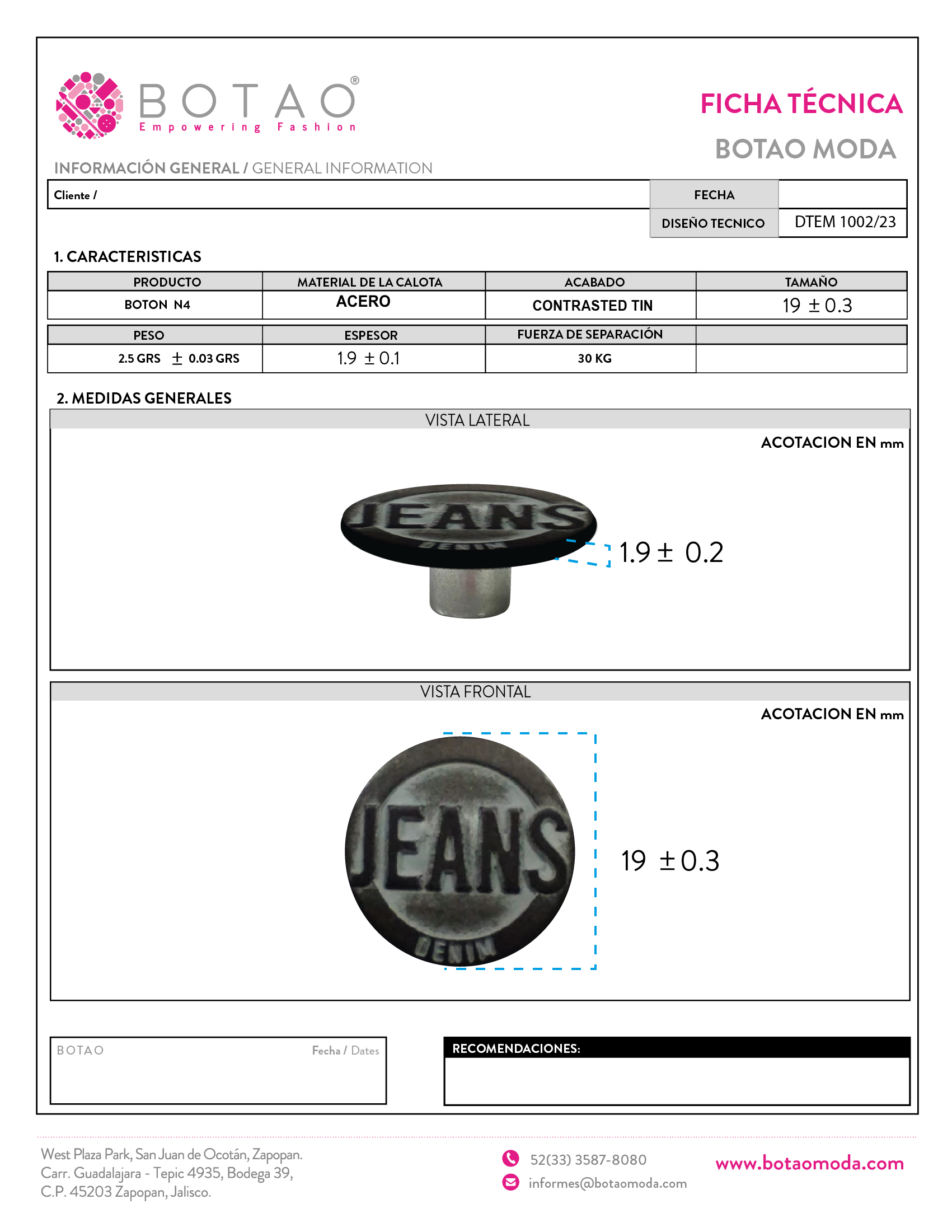 Boton Acero 19 mm N4 Tendencia DTEM 1002/23