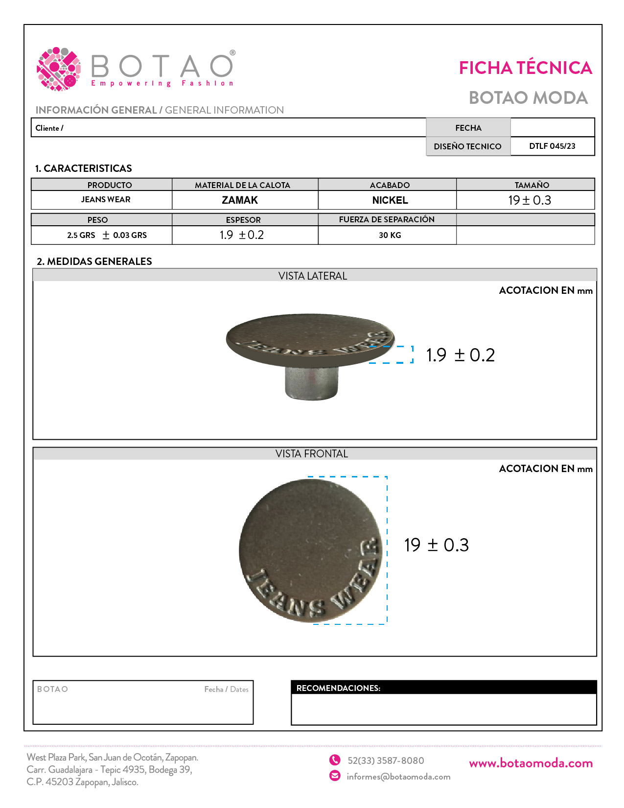 Boton Zamac 19 mm N4 Tendencia DTLF 045/23