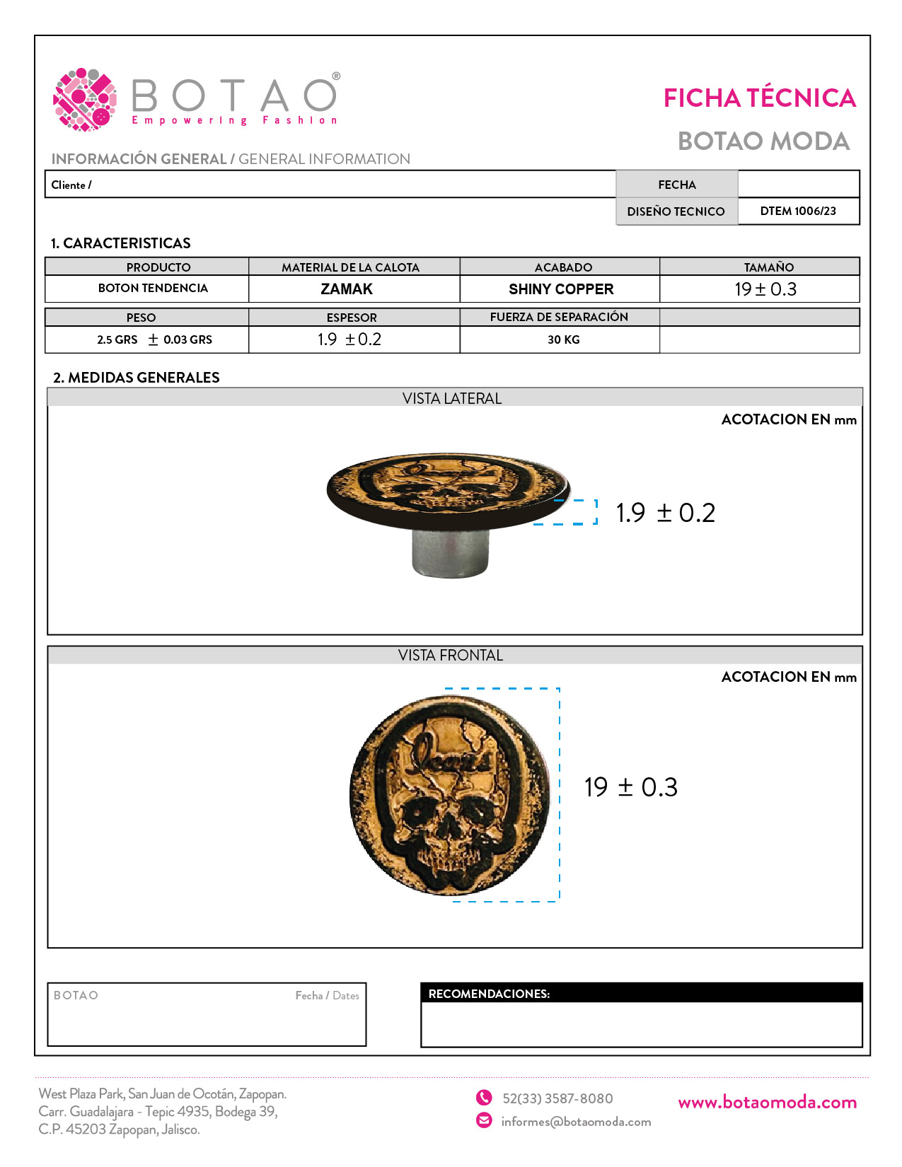 Boton Acero 19 mm N4 Tendencia DTEM 1006/23