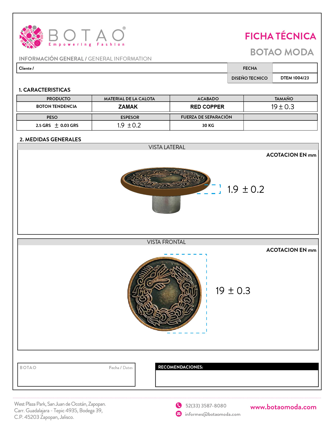 Boton Zamac 19 mm N4 Tendencia DTEM 1004/23