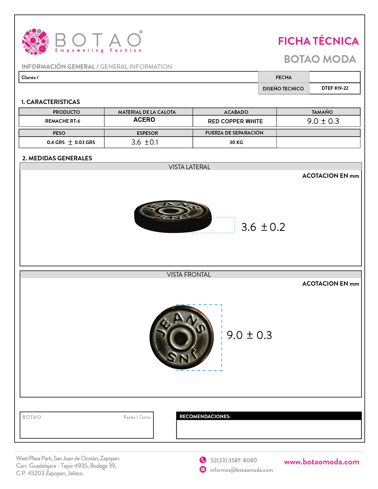 Remache Acero 9.0 mm RT 6 DTEF 819-22