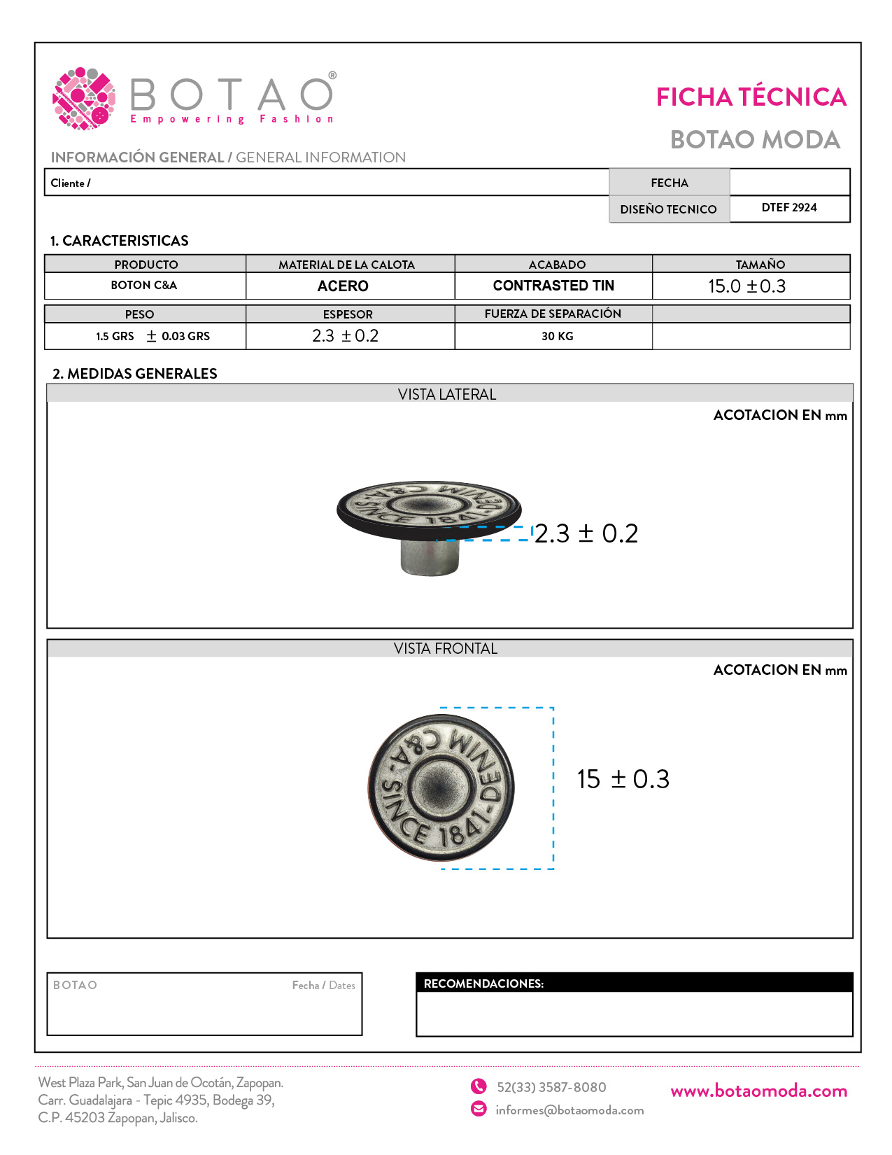 BOTON JENAS N4 C&A MATERIAL ACERO 15mm ACABADO CONTRASTED TIN