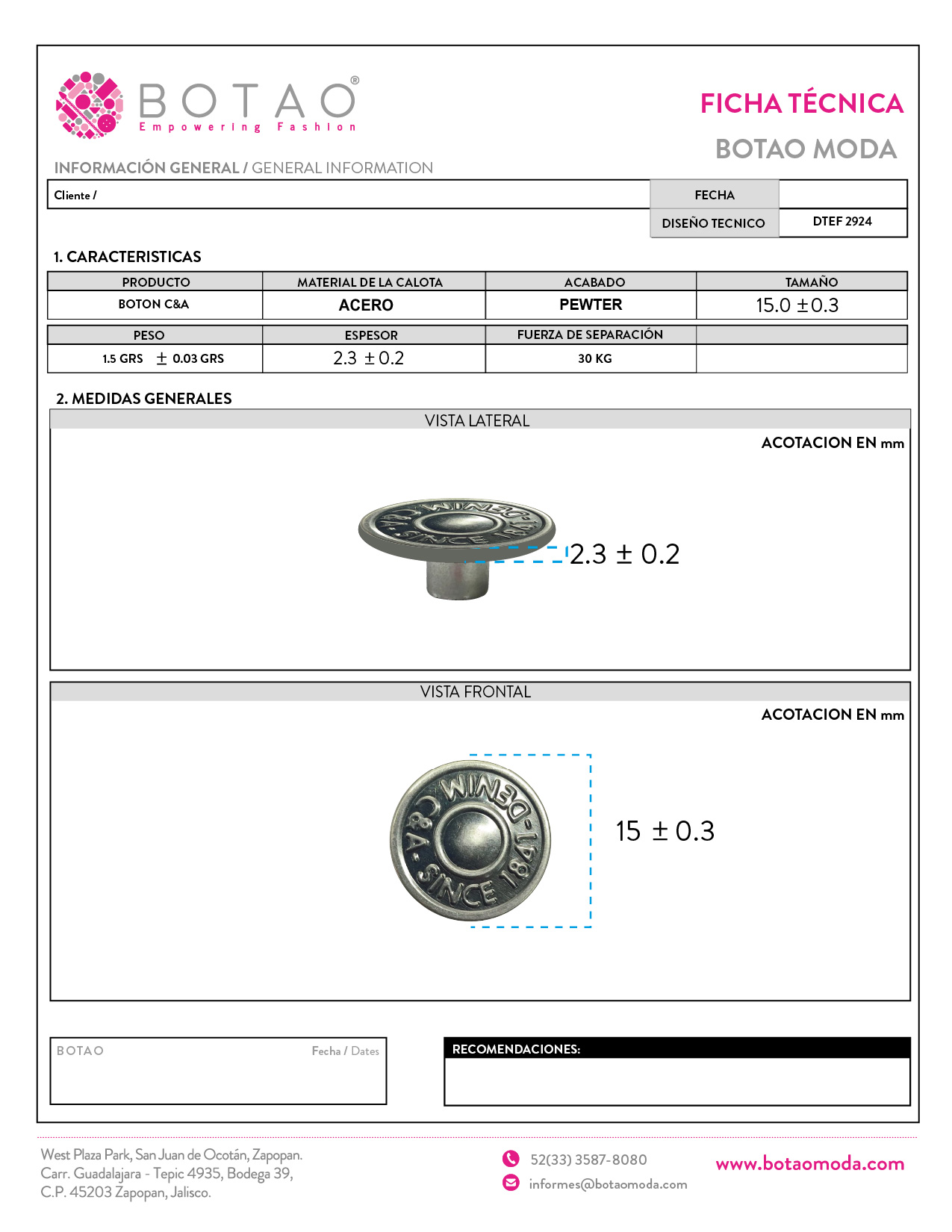 BOTON JEANS N4 C&A MATERIAL ACERO 15mm ACABADO PEWTER