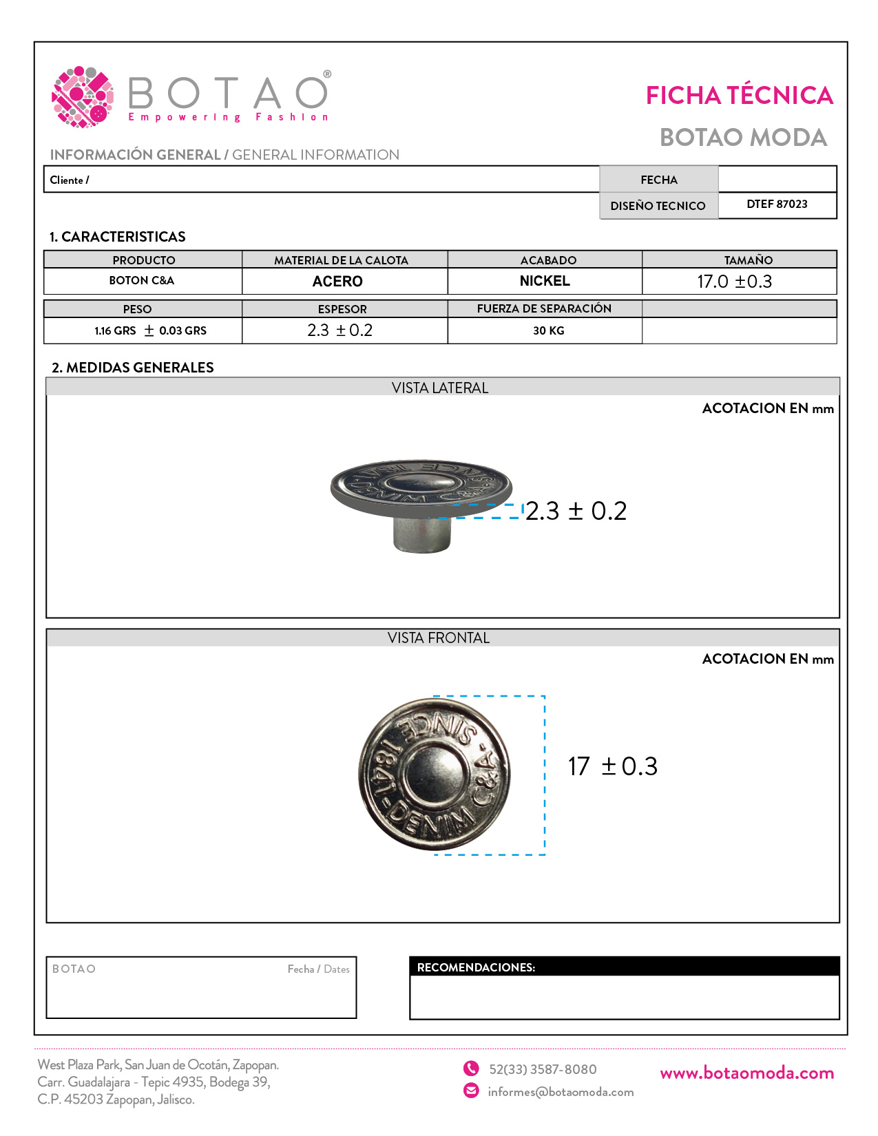 BOTON JEANS N4 C&A MATERIAL ACERO 17mm ACABADO NICKEL