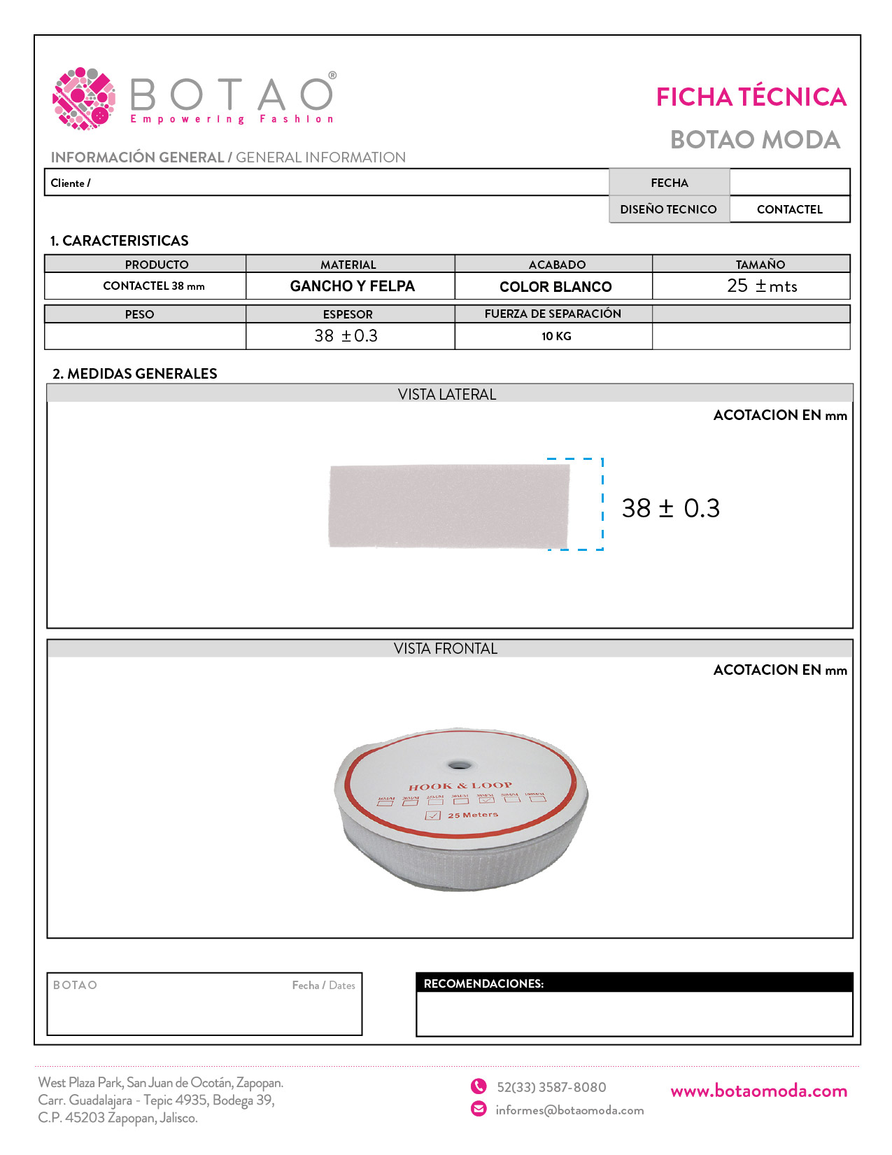Contactel Felpa y Gancho 38 mm Color Blanco (25 mts)