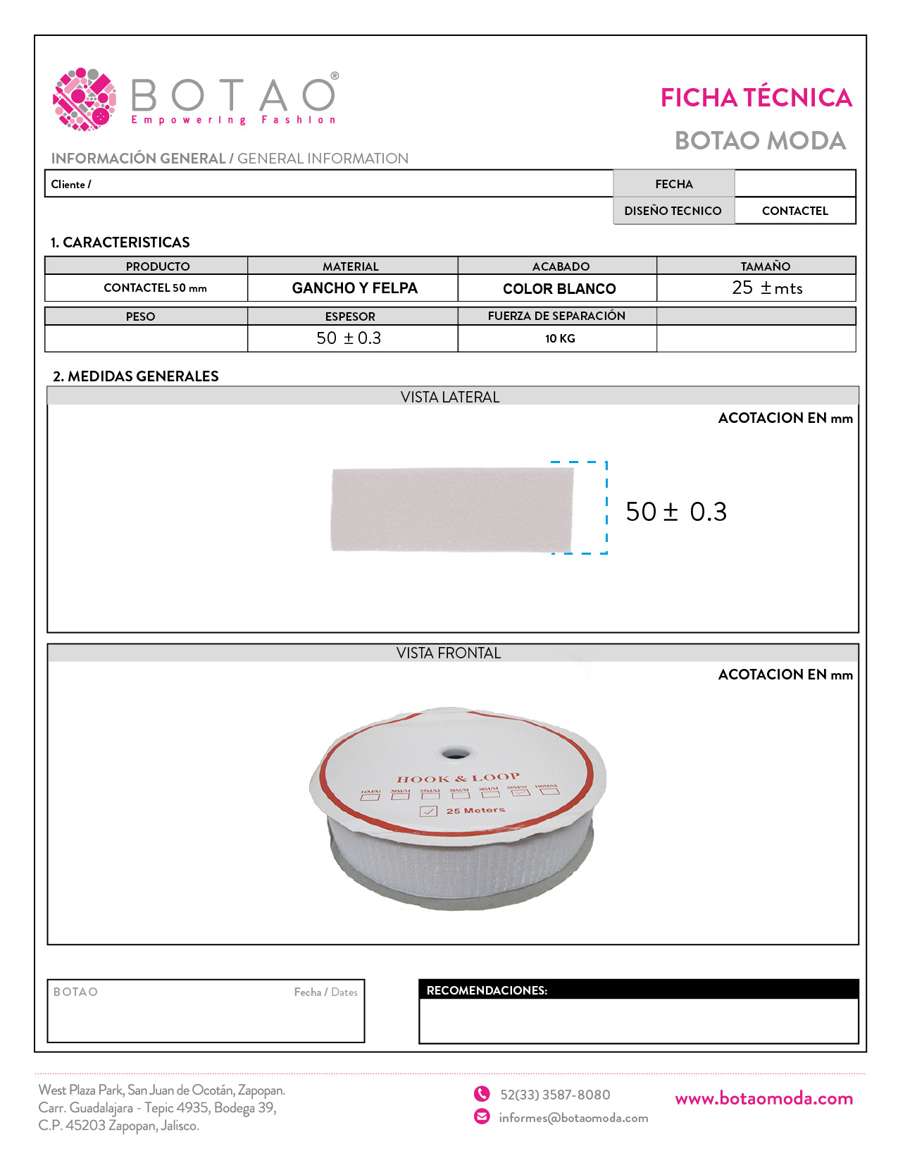 Contactel Felpa y Gancho 50 mm Color Blanco (25 mts)