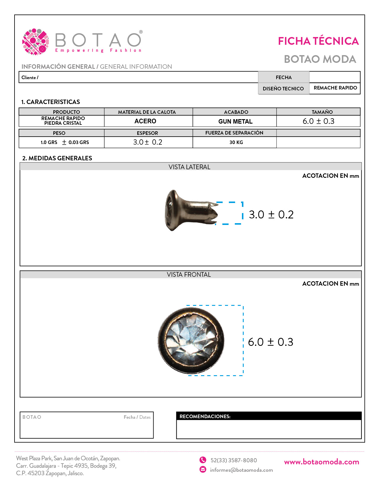 Remache rapido acero piedra cristal 06 mm Gun metal