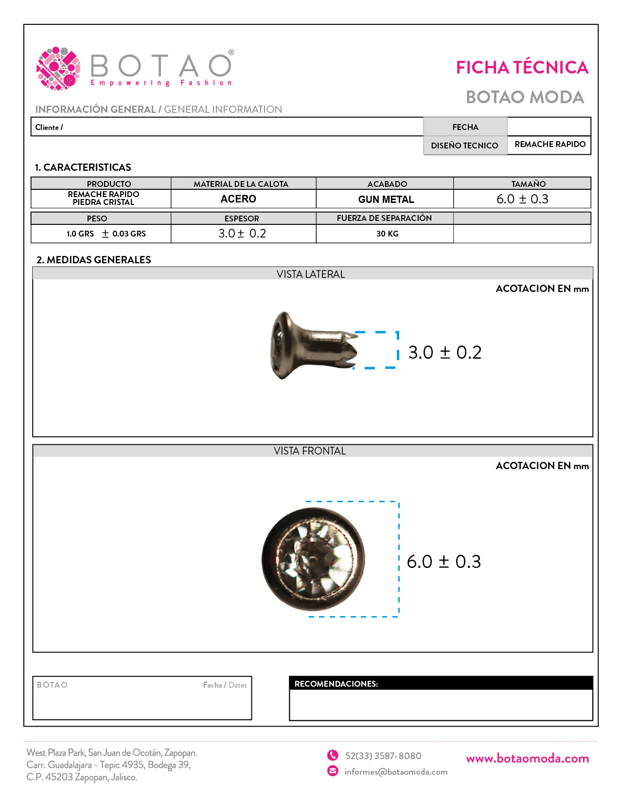 Remache rapido acero piedra cristal 05 mm Gun metal