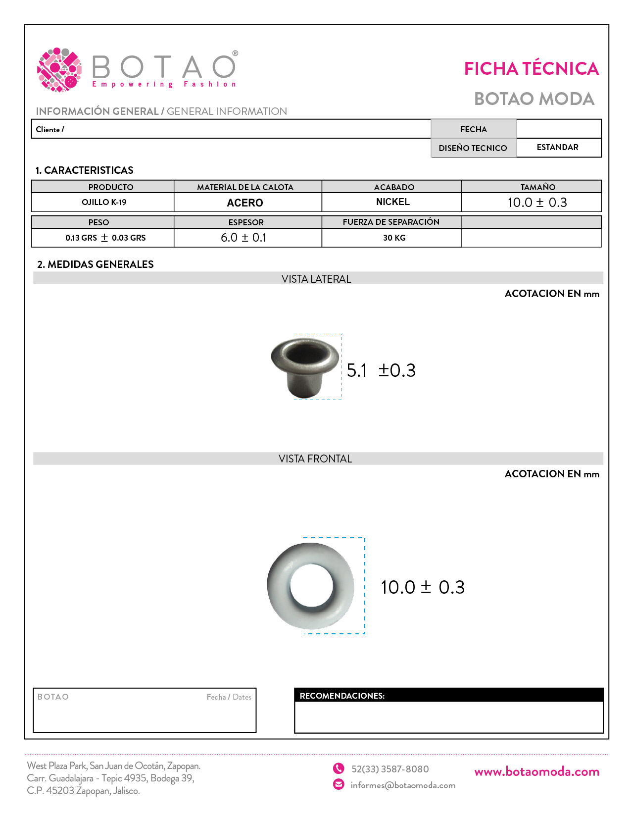 Remaches, etiquetas, botones, broches, todo tipo de producto para fijación de la industria del calzado, mueblera, textil, etc.