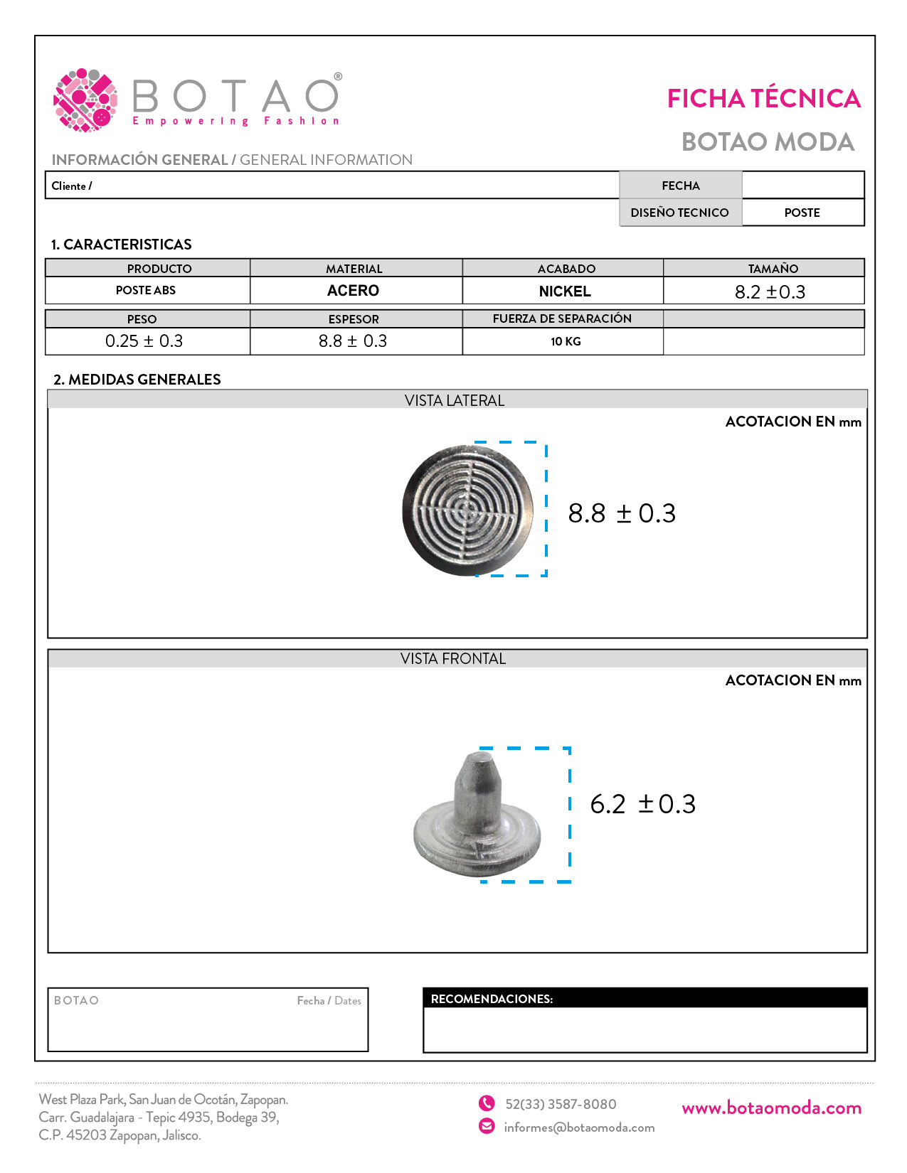 Remaches, etiquetas, botones, broches, todo tipo de producto para fijación de la industria del calzado, mueblera, textil, etc.