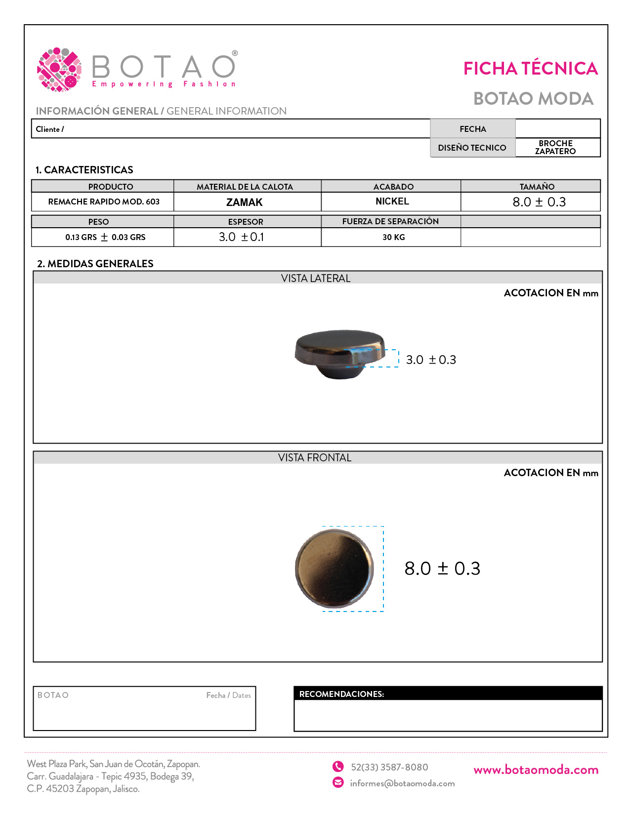 Remache Zapatero Plano Mod.603 Zamack 08 mm